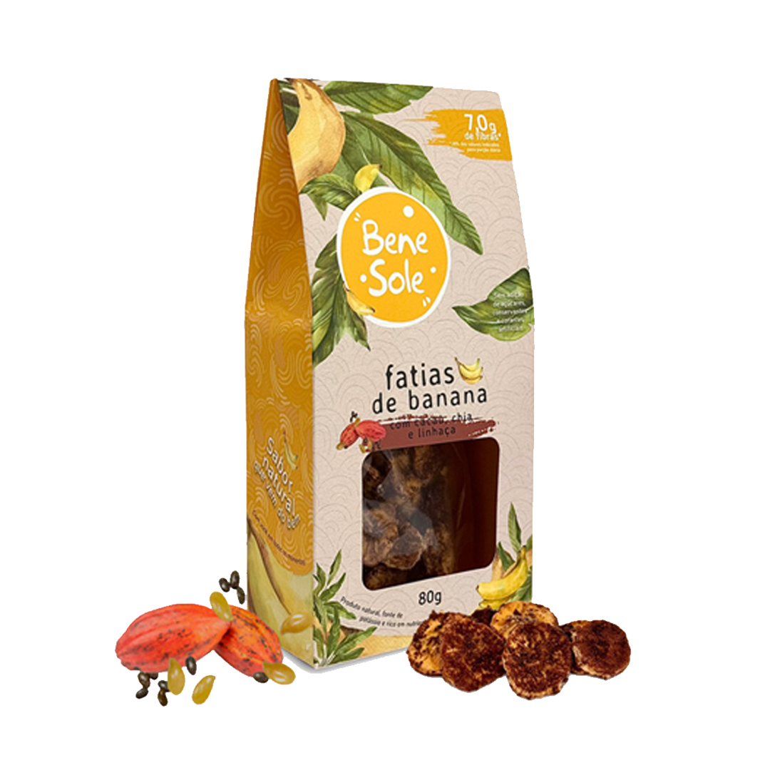 Fatias de banana com cacau, chia e linhaça – 80g