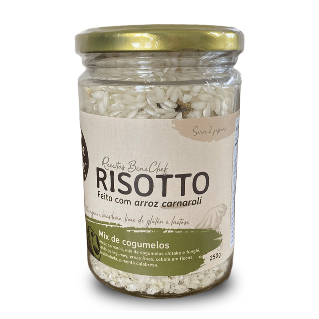 O Risoto Mix de Cogumelos Benesole combina arroz carnaroli com um delicioso mix de cogumelos shitake e funghi, além de caldo de legumes, ervas finas, cebola em flocos desidratada e um toque de pimenta calabresa.